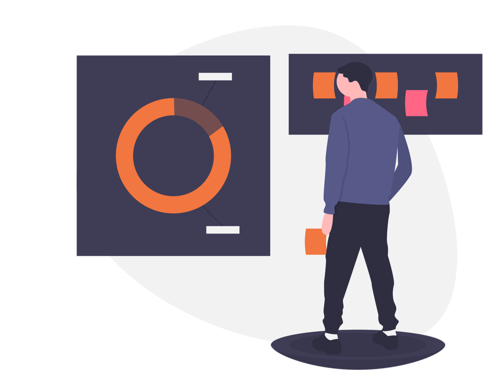 hombre trajeado ante un gráfico